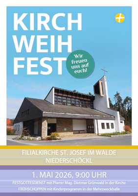 Das Team der Pfarre lädt sehr herzlich zum Festgottesdienst in der Filialkirche St. Josef im Walde am 1. Mai um 9 Uhr ein.